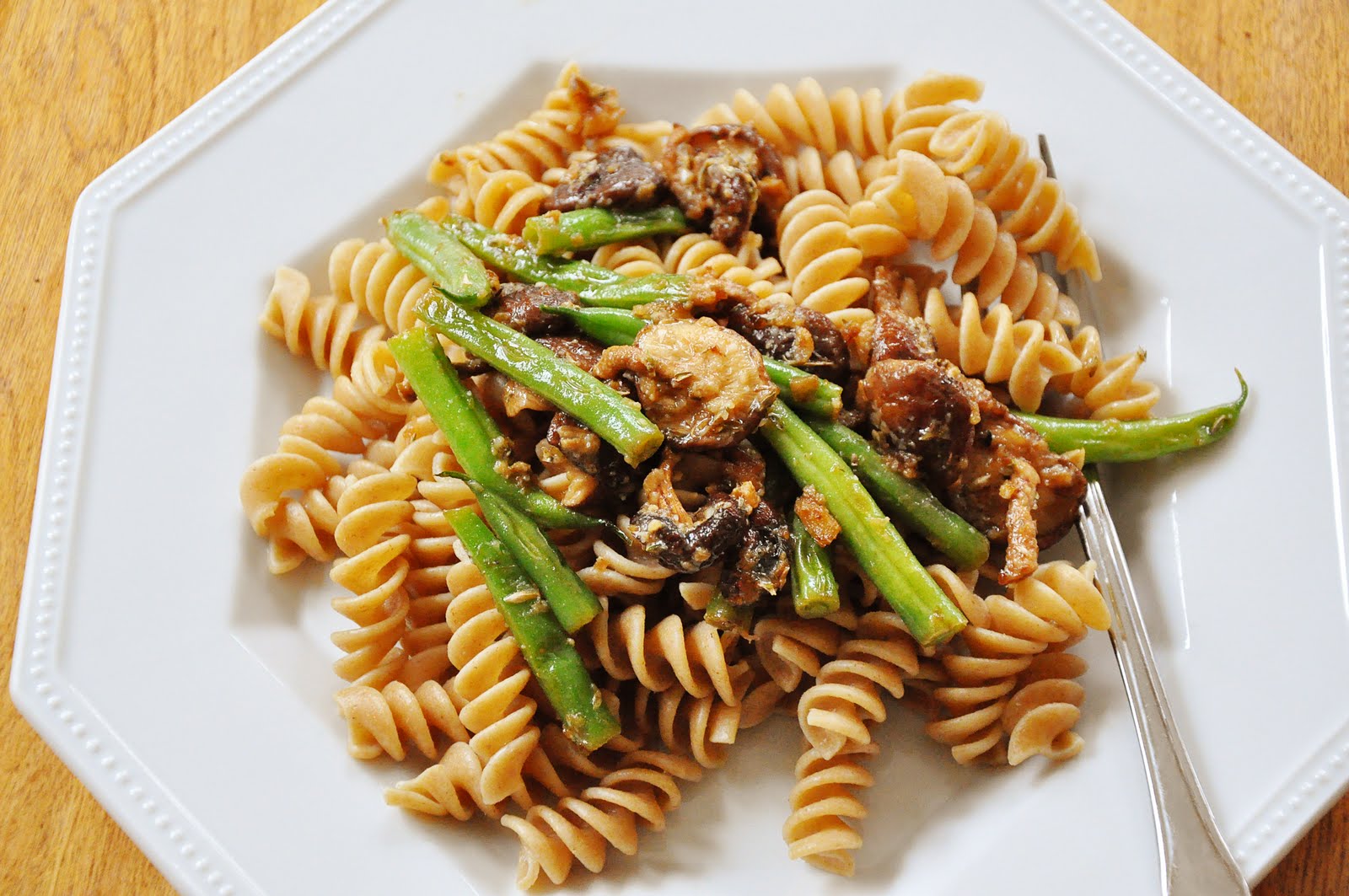 This has to be one of mine (and my Mom’s) favourite dishes; it’s a quick and healthy way to dress up pasta with two of my favourite veggies - green beans and mushrooms! Sure, there’s a little butter and some Parmesan cheese but hey, live a little.